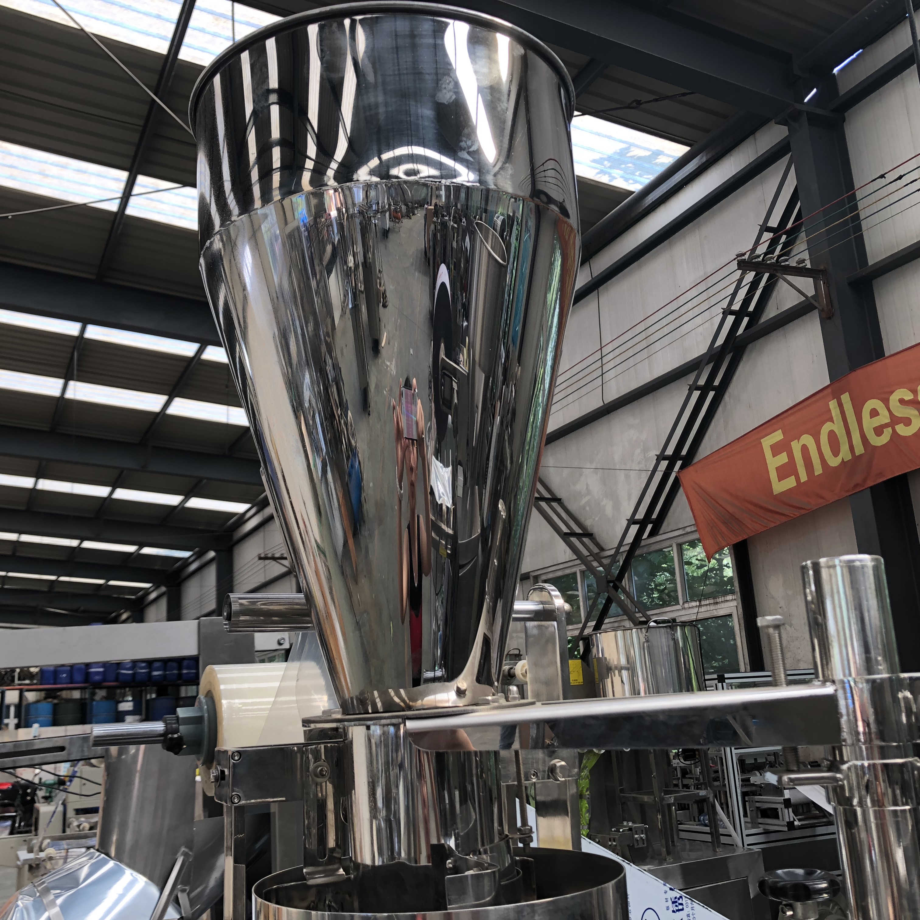 2. The main features of this machine are: one-time complete inner and outer bag packing, avoid contacting material by hand.